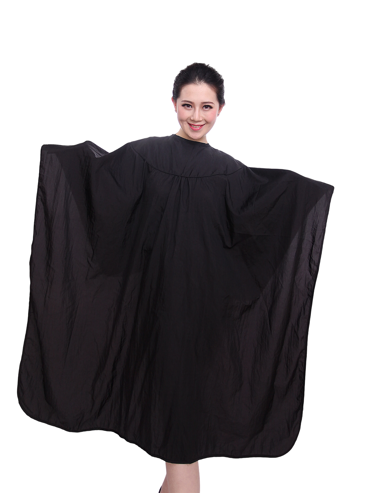 Designed for professional efficiency, this chemical resistant salon cape features: