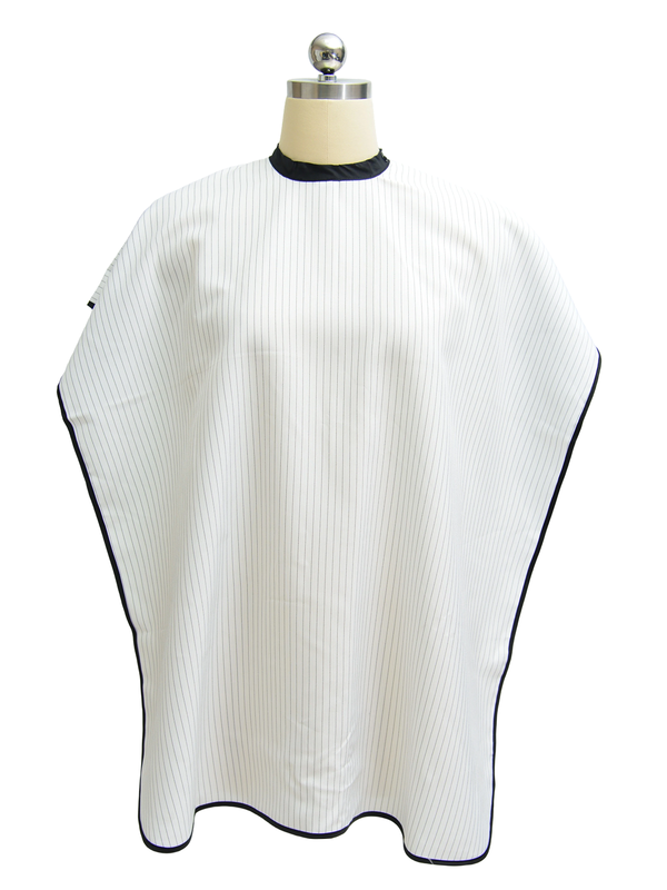 The cape’s standout feature is its neoprene collar, which ultimately prevents hair from sticking—eliminating the irritation that often makes kids fussy during haircuts. The soft neoprene material feels gentle on the neck, while the contrast piping on the edge and collar adds a touch of elegance, making the cape look both stylish and professional. Available in classic vintage designs like white with black pinstripes or black with white pinstripes—plus customized color options—it appeals to kids and parents alike, turning a routine haircut into a fun experience. The exquisite sewing workmanship and excellent piping ensure the cape holds up to frequent use and washing, making it a long-lasting investment for salons specializing in kids’ hair care.